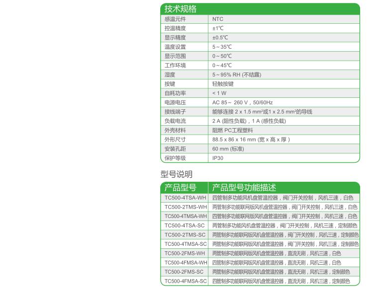 • TC500系列多功能型液晶顯示風機盤管溫控器