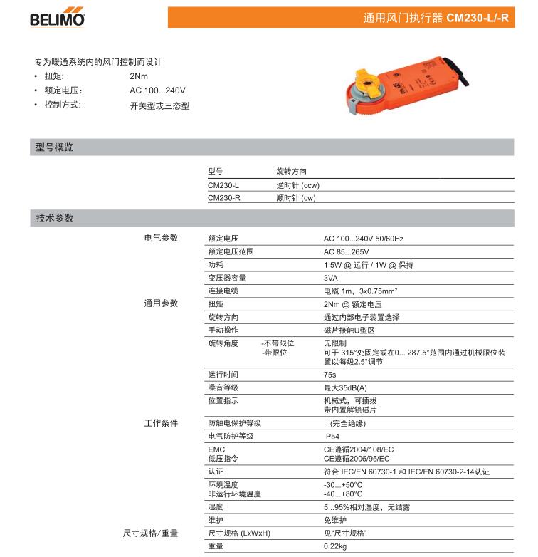 • CM230通用風門執行器
